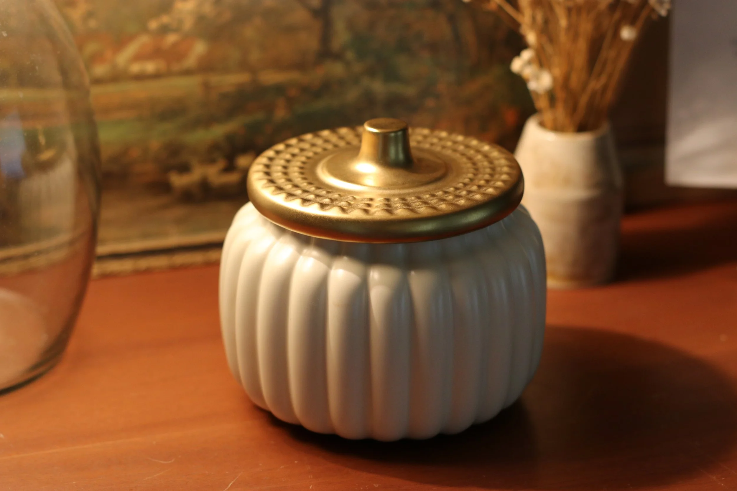 Your favorite Harvest candle is now available in a special limited-edition of twenty ounces, beautifully poured into an ivory pumpkin-shaped vessel topped with a brass lid. This seasonal favorite blends warm notes of pumpkin, cinnamon, nutmeg, and clove, creating a cozy autumn ambiance perfect for crisp evenings. The elegant design makes it a timeless décor piece that can be enjoyed long after the candle has burned.